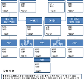 가족력 보유 여부 확인을 위한 차트 및 이용 방법 가족력을 조심해야 해요 ! 그렇다면 가족력이 뭐지 ? 고혈압이나 당뇨병 등을 얘기할 때 빼 놓지 않고 등장하는 용어가 있습니다. 가족력이라는 말입니다. 가족력이 있으면 해당 질병에 걸릴 가능성이 무척 높으니 조심하라는 경고도 이어집니다. 그렇다면 가족력이 뭘까요 ? 이때 가족의 범위는 어디까지일까요? 꼬리에 꼬리를 물고 자꾸만 궁금증이 이어집니다. 이에 오늘은 가족력을 어떻게 판단할 수 있는지 설명 드리고자 합니다. 가족력 파악을 위해 가족의 질환 차트를 만들어 보세요 ! 가족력 여부를 알기 위해서는 가족들의 질환에 대한 조사가 필요합니다. 이때 대상은 자신을 기준으로 3대이며, 친가와 외가를 모두 포함합니다. 자신의 할아버지와 할머니, 외할아버지와 외할머니, 아버지와 어머니 및 그분들의 형제/자매, 본.. 더보기 이전 1 ··· 43 44 45 46 47 48 49 ··· 105 다음